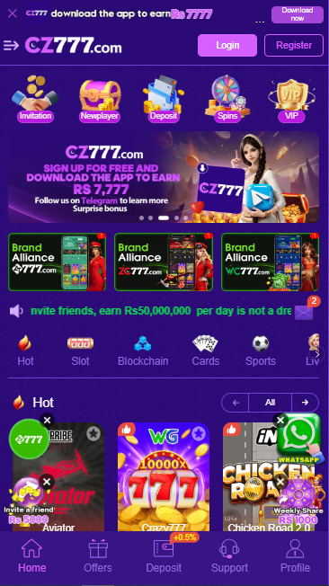 Here at this Cz777 App all the users can play different games and in return they will get the coins. These coins can be converted into real cash at the time of withdrawal. So, the more you play the games here higher will be the amount of cash you make.